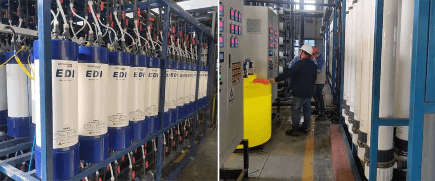 業(yè)主要求在拆除混床前提條件下,采用2套二級反滲透和EDI系統調試正常出水,來(lái)滿(mǎn)足業(yè)主正常生產(chǎn)運行需要。該項目施工周期短、任務(wù)重,奧美環(huán)境執行團隊克服了春節放假的困難,放棄假期休息,于3月2日將所有設備、閥門(mén)、管道、電氣、儀表等安裝并進(jìn)行通水調試。