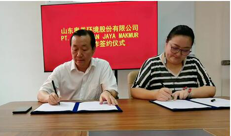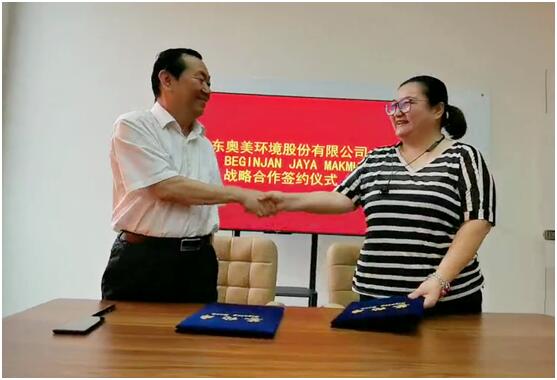 7月3日上午,農發(fā)集團總經(jīng)理張慶璽、PT.BEGINJAN JAYA MAKMUR總經(jīng)理高源分別代表山東奧美環(huán)境股份有限公司和PT.BEGINJAN JAYA MAKMUR在青島簽訂了戰略合作協(xié)議。