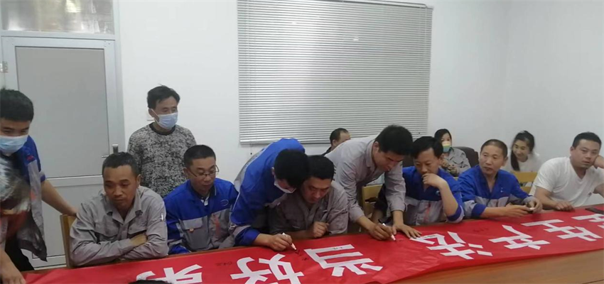 6月8日,奧美環(huán)境如期在水發(fā)優(yōu)膜生產(chǎn)基地舉行全國第21屆安全生產(chǎn)月第二周宣貫活動(dòng),生產(chǎn)車(chē)間一線(xiàn)作業(yè)人員全員積極參與,并在宣傳橫幅簽字。